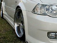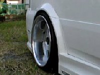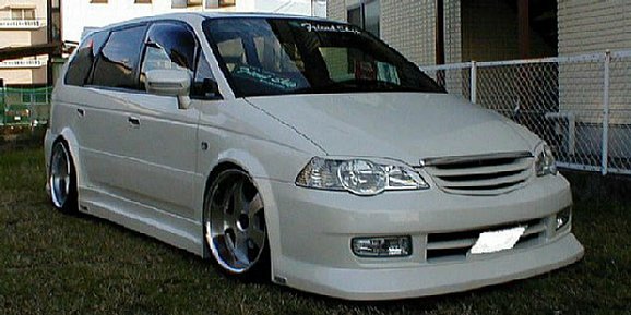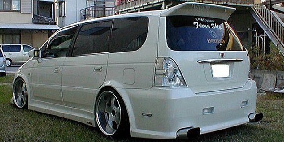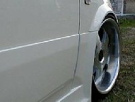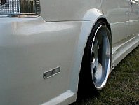 | このODESSEYは、”走るときは車高を上げる”というエアサス車の常識をくつがえした一台です。 実はこの車、写真の車高で走行できるのです。もちろんハンドルも切れます。 ”走っている時もかっこよくなくてはダメ!!”というオーナーさんの一言で大変苦労致しました。 しかし、さすがにコンビニには、車高を上げて入ります。 オーバーフェンダーは、鉄板溶接で作られています。キット溶接によって作られているブリスターフェンダーに比べると、 キットが不要な分、お値打ちになっています。オーバーフェンダーに合わせる為、両バンバー・サイドステップの張り出しは、 FRPで加工しています。全体的のバランスを考え、サイドステップとリアバンバーの幅を3cmほどDOWNさせています。 フォグに合わせた”フォグ穴加工”とマフラーに合わせた”マフラー口加工”は朝飯前です。 |