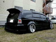 | このODESSEYは、新型オデのエアロをこの旧型オデにドッキングさせています。 旧型オデ用のブリスターキットがない為、新型オデのブリスターキットを購入。当然付きません。 そこで、購入した新型オデのエアロに旧型オデのエアロをドッキングさせ車の形状に合うようにしました。 サイドステップ、ドアパネルも、長かったり短かったりでぜんぜん付きませんので、車に合わせて加工し取り付けしました。 型違いのエアロを付けたとは思えないほど全体的なバランスもよく、完成度は高いです。 |