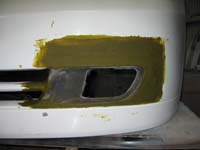 と、言うことで 純正バンバーを型に、 フォグのところをFRPで作っちゃいました。 |