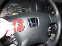 次は、ステアリングのホンダエンブレムを撤去し、 アキュラに変えます。 |