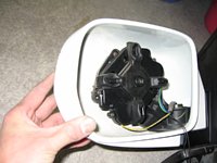 純正ドアミラーを分解。 中、狭。 このスペースでは移植不可能です。 |